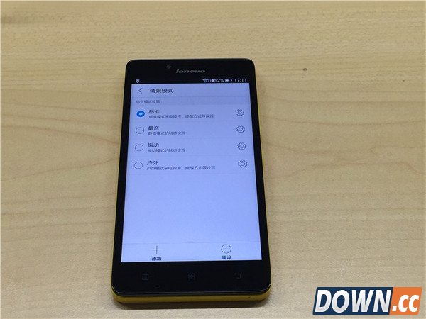 6.在最下方还有【添加】和【重设】两个按键,分别可以添加新的自定义情景模式,以及将所有情景模式重设,恢复为出厂设置 7.在根据自己的需求更改完情景模式的各项设置以后,直接点击“返回键”,系统会自动保存修改后的设定