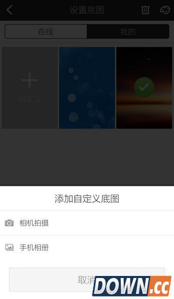7.还可以选择【自定义】,用拍照或从相册选择图片来作为皮肤背景