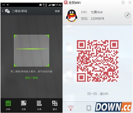 4、二维码扫一扫,轻松连接,可以通过QQ、、QQ浏览器、腾讯管理的扫一扫功能,扫描二维码连接网络,免除帐号密码输入的繁琐