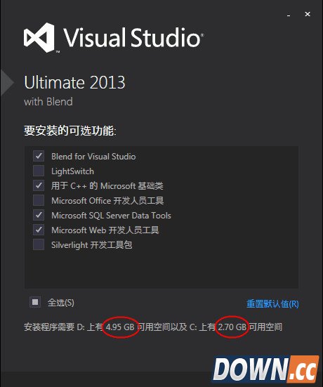 4、在选择安装的可选功能这里,大家可以根据自己需要勾选,也可以默认全选。这里有个小功能,把鼠标放在文字上,会弹出各个功能的详细描述。小编选择四个常用的功能,另外要注意预留空间,开始安装。