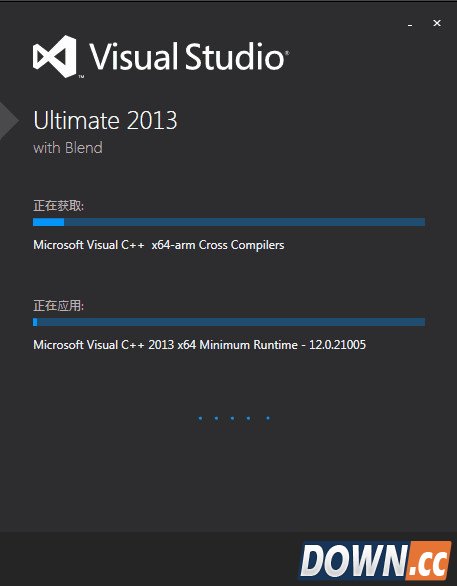 5、等待大概30分钟,就可以完成安装。安装过程中,VS会占用很多的系统资源,所以最好不要开启其他软件,等待安装