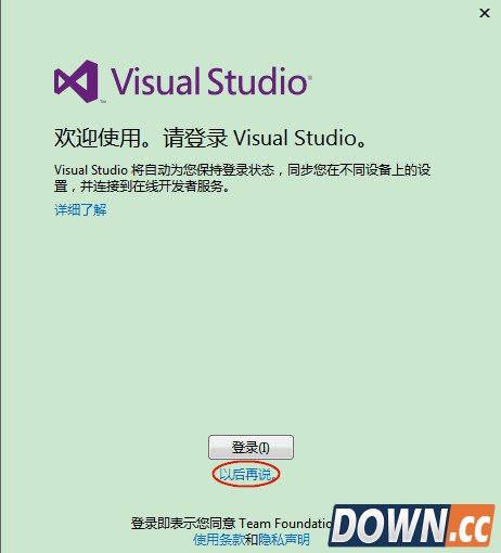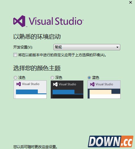 6、第一次打开可能需要进行一些基本配置,如开发设置、颜色主题,根据自己的需求设置,然后等待几分钟就可以使用。由于VS2013引入了一种联网 IDE 体验,大家可以使用微软的账户登录,而且其还自动采用联网 IDE 体验的设备上同步设置,包括快捷键、Visual Studio 外观(主题、字体等)各种类别同步的设置