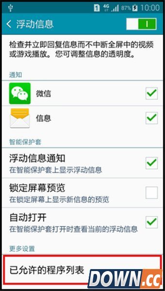 6.将【总是允许】的对钩取消后,可以自定义浮动信息的应用程序。