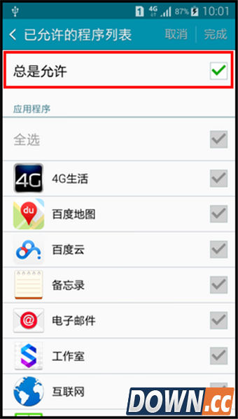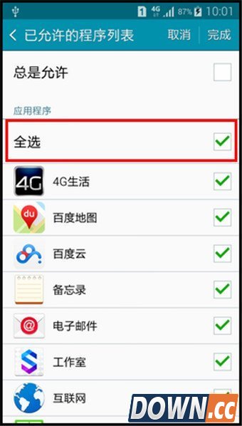 7.将【全选】的对钩取消后,将取消所有应用程序的选择。