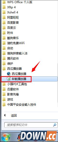 卸载西瓜影音方法大全 西瓜影音常规方法1 1、一般安装好西瓜影音之后,开始--- 所有程序 里面会有西瓜影音的选项,点击打开 下方会有一个“卸载播放器 ”