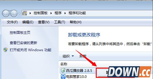 2、如下图找到,卸载或更改程序里面的 西瓜播放器选择右键--“卸载”即可。接下来同样跟上述方法一样,就是西瓜播放器,西瓜影音的卸载向导页面了