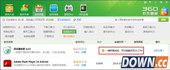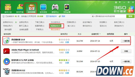 卸载方法3 1、如果你习惯使用360或其他第三方安全工具,可以通过找到软件卸载功能。按照分类找到西瓜影视,选择“一键卸载”即可