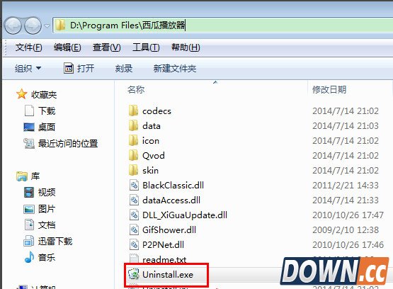 2、打开找到西瓜播放器西瓜影视安装文件夹目录下面,点击打开“uninstall.exe”文件即可进入卸载界面啦