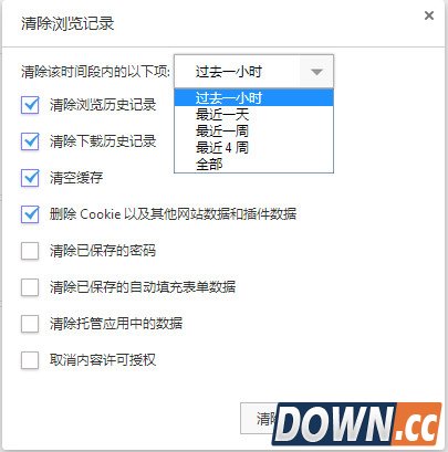 2、在弹出的对话框中选择你要清除的一些浏览器记录,点击“清除浏览器数据”