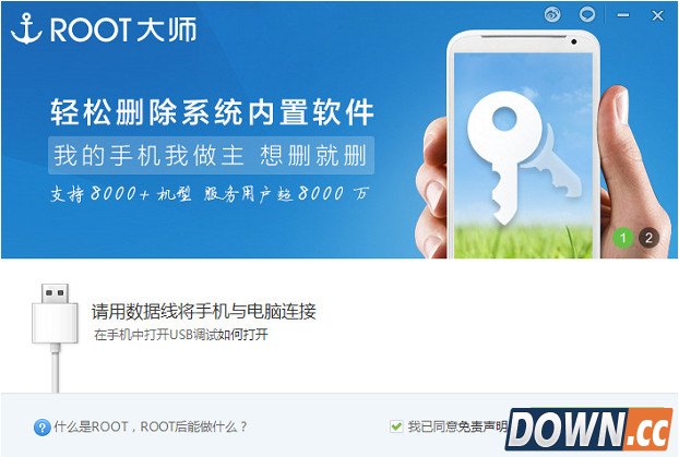 3、打开ROOT大师,等待usb连接成功,如下图所示: