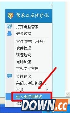 1、在使用360随身WiFi时,建议关闭除360之外的其它相关防护类软件,比如“腾讯电脑管家”。直接右击任务栏对应图标,选择“退出”或“进入免打扰模式”项即可。