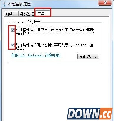 6、在打开的窗口中,切换到“共享”选项卡,勾选其中的两项内容,点击“确定”完成设置。