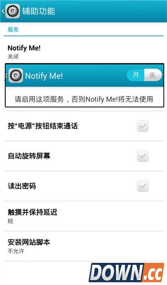 使用智能手机的小伙伴们都知道,除了短信之外,很少APP会有弹窗提醒,导致我们在第一时间可能错过一些重要的信息。如果你不想错过任何时间段的提醒,那就接着往下看吧! 我们不容易错过短信提醒,就是因为来短信时手机屏幕会自动点亮并弹出提醒窗口。但是,第三方APP则鲜有如此贴心的服务。此时,我们可以借助“Notify Me”这款软件,赋予所有APP弹窗提醒的功能。在手机上安装“Notify Me”后,系统设置→辅助功能界面里就会出现Notify Me的新选项,点击并将其设置为开启状态即可。