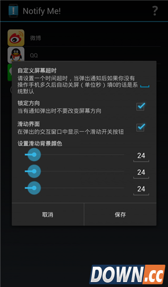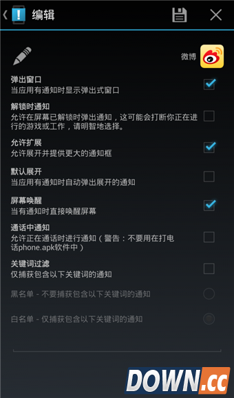 3.添加APP时我们可以选择消息提醒的条件,比如自动唤醒屏幕、自动弹窗