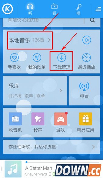 在PC版酷狗音乐里,我们可以通过铃声制作来剪切歌曲,而在手机酷狗音乐里,剪切歌曲更便捷,几步就能搞定,要是你还不知道的话,不如来看看哟! 1.在【本地音乐】或【下载管理】找到已下载的歌曲