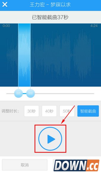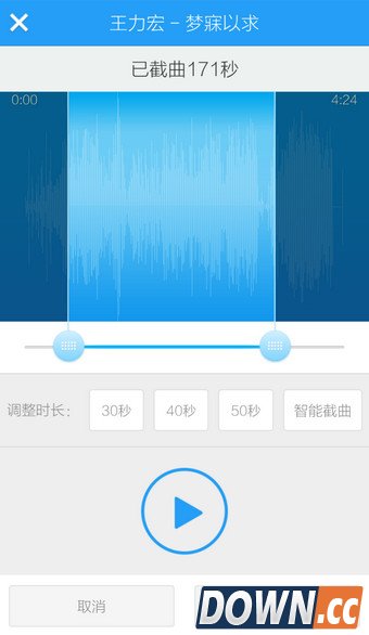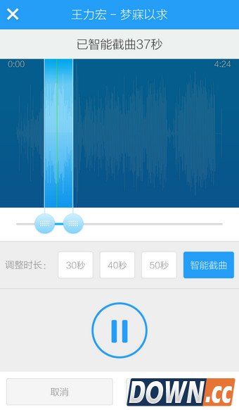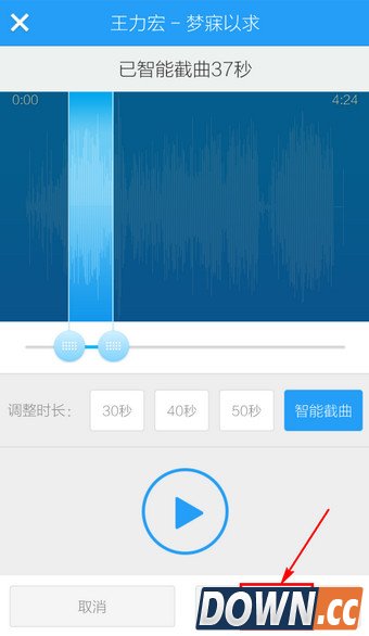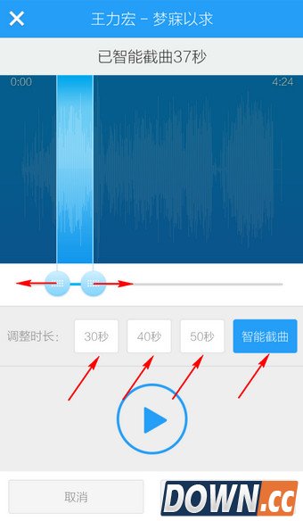 5.酷狗音乐已智能剪切歌曲高潮部分,你可以自己调整
