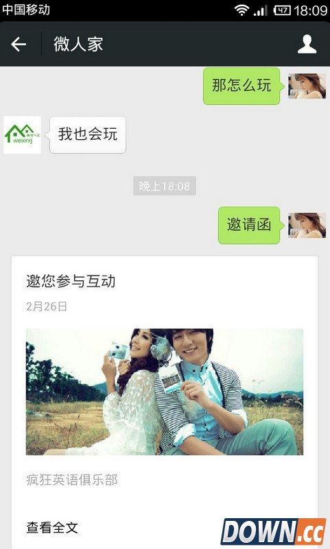6、在手机上打开微信,回复前面设置的关键词即可看到效果。