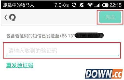 7、这里你的手机会收到一个验证码, 查看短信输入你验证码,点击“完成”,