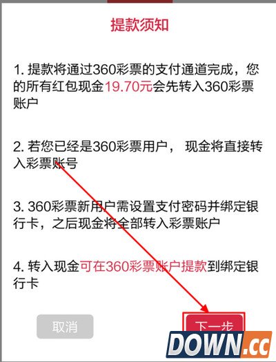 3、点击我要提款之后,弹出提款须知页面,点击下一步。