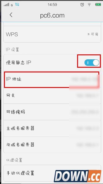 2、进入后我们打开“使用静态IP”的开关,然后点击“IP地址”