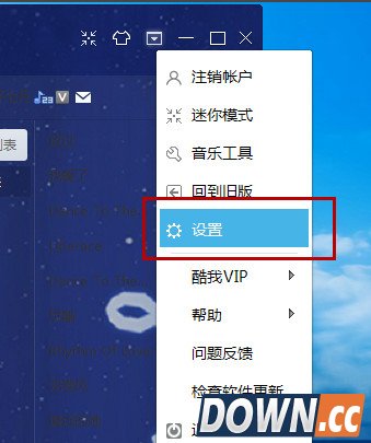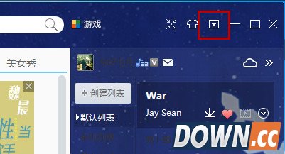 1、打开酷我音乐,点击右上角的倒三角按钮。