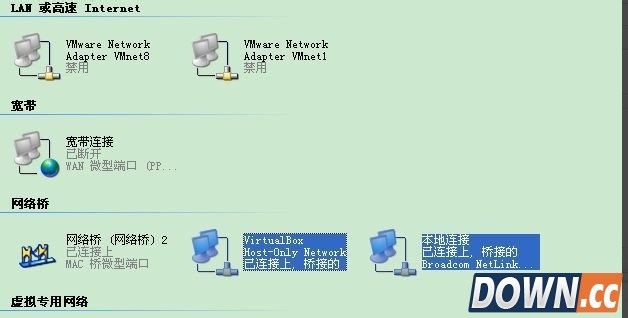 第二种 Bridged Adapter模式 解释: 网桥模式是我最喜欢的用的一种模式,同时,模拟度也是相当完美。你可以这样理解,它是通过主机网卡,架设了一条桥,直接连入到网络中了。因此,它使得虚拟机能被分配到一个网络中独立的IP,所有网络功能完全和在网络中的真实机器一样。 虚拟机与主机关系: 可以相互访问,因为虚拟机在真实网络段中有独立IP,主机与虚拟机处于同一网络段中,彼此可以通过各自IP相互访问。 虚拟机于网络中其他主机关系: 可以相互访问,同样因为虚拟机在真实网络段中有独立IP,虚拟机与所有网络其他主机处于同一网络段中,彼此可以通过各自IP相互访问。 虚拟机于虚拟机关系: 可以相互访问,原因同上。 IP:一般是DHCP分配的,与主机的“本地连接”的IP 是同一网段的。虚拟机就能与主机互相通信。 笔记本已插网线时:(若网络中有DHCP服务器)主机与虚拟机会通过DHCP分别得到一个IP,这两个IP在同一网段。 主机与虚拟机可以ping通,虚拟机可以上互联网。 笔记本没插网线时:主机与虚拟机不能通信。主机的“本地连接”有红叉,就不能手工指定IP。虚拟机也不能通过DHCP得到IP地址,手工指定IP后,也无法与主机通信,因为主机无IP。 这时主机的VirtualBox Host-Only Network 网卡是有ip的,192.168.56.1。虚拟机就算手工指定了IP 192.168.56.*,也ping不能主机。