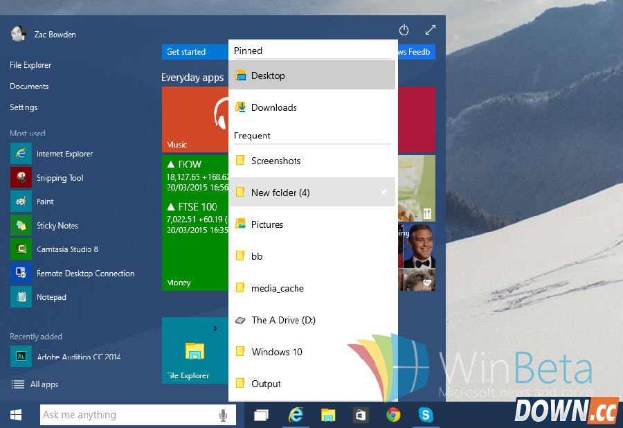 所谓跳转列表(Jump List)能够记忆用户最近打开的项目列表,帮助用户快速访问历史记录。在开始菜单和任务栏中,每个程序都有一个跳转列表,可以帮助用户轻松找到最近使用过的文档。 值得注意的是,Windows 10的跳转列表完全支持Windows 8.X和Windows 7应用程序,这意味着程序员们不必再通过特殊的调试来让它们的软件适应Windows 10。 遗憾的是,目前Windows 10的功能开发工作还没有最终完成,因此跳转列表功能仍不稳定,而我们也期待能够在今年夏天发售的正式版操作系统中看到它的身影。