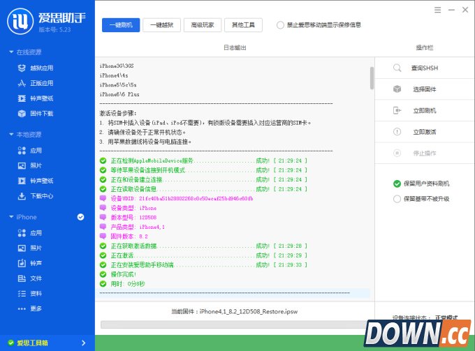 4.进入DFU模式之后刷机将自动进行。