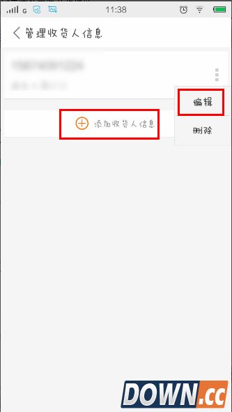 2、点击添加收货人信息,添加一个“配送地址”或者我们也可以点击已有信息的旁边的三个点点==编辑==然后重新编写==点击“保存”