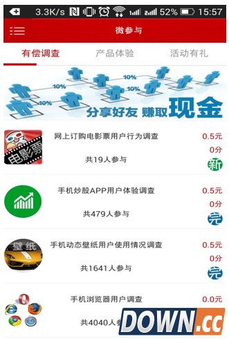 比达咨询是以技术为主导,通过移动互联网技术和大数据分析工具的深入应用和高效建模分析方法,彻底颠覆传统的市场调查和数据分析,为企业带来免费的调查平台、大数据分析服务和定制市场研究报告等服务的创新型移动互联网公司。公司自成立以来,迅速获得业界的广泛认可,服务的企业涵盖百度、阿里巴巴、优酷土豆、爱奇艺、搜狐、搜狗、58同城等国内知名企业,为其提供数据分析、调查研究等服务。 基于比达咨询这一专业市场研究机构的背景,“微参与”调查平台还能为企业提供基于真实调查数据基础上的数据分析和定制报告服务。 从参与调查用户的角度来看,该调查平台是一款有偿问卷调查类APP,用户下载安装并注册后可以答题并获得相应积分及现金奖励。由于秉承 “轻松、安全、便捷地用手机赚钱!”的服务理念,很快获得网友的认可,目前,微参与的活跃用户数已经达数万名,能满足移动互联网行业的一般性调查需求。 了解更多详细细节,请在百度手机助手、应用宝等国内主流应用商店用安卓手机搜索下载“微参与”或者在手机浏览器中输入 http://www.cnit-research.com/PaidSurvey.apk 直接下载,或者在官网上扫描二维码下载:http://weicanyu.bigdata-research.cn/?page_id=29。 联系人:陈先生 电话:18910771576 QQ:459508327 邮箱:clm@bigdata-research.cn |