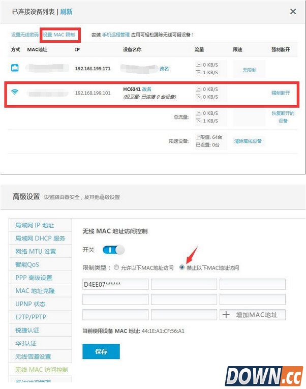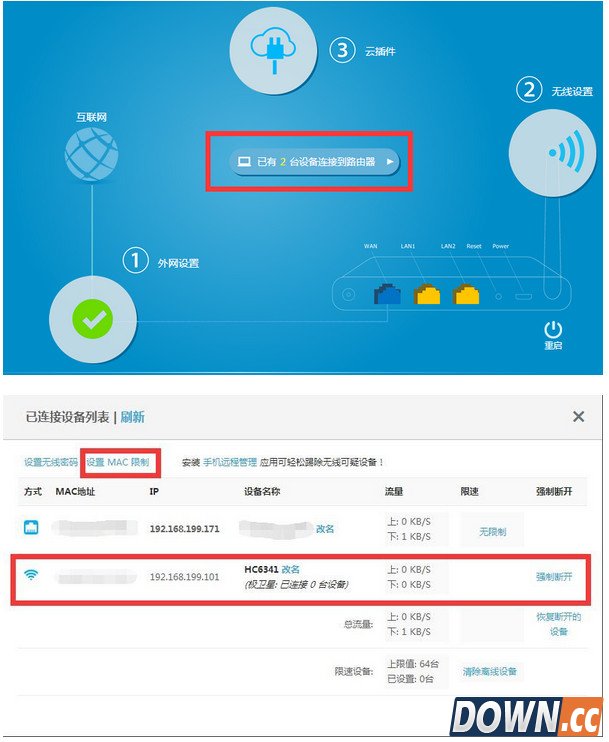 配对不成功的排查方案 1、查看极路由是否开启了访问限制,限制列表中是否存在卫星MAC,如有的话,请关闭访问限制,点击下图中“设置MAC限制”