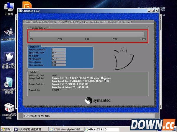 3.在提示框中,单击“确定”按钮,接下来系统的安装将会自动运行,如图: