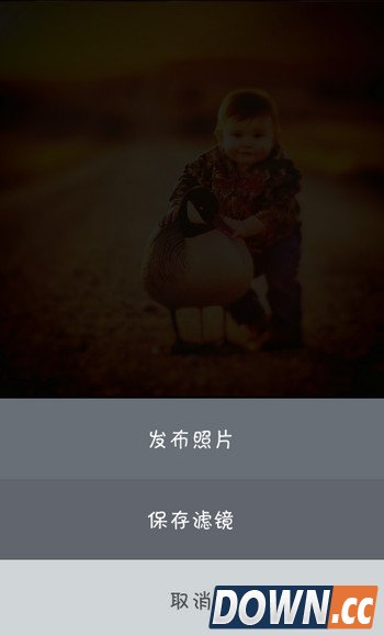 7、所有的做好后点击右上角,会出现"发布图片“,”保存滤镜“和”取消“,如果你不想发布就保存滤镜吧