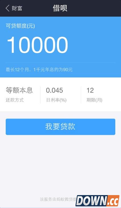 支付宝推出了一卡消费信贷产品——“借呗”,只要芝麻分不低于600分的用户都可以使用个人消费贷款,按照分数的不同,用户申请贷款也有所差别,最高可贷款50000元,申请到的额度可以转到支付宝余额。海宽时间最长期限为12个月,宽带日利率为0.045%,随借随还,是不是很心动呢?小编提醒大家消费要有节制啊! 如何贷款 要使用“借呗”,首先你得确保自己的芝麻信用分值不低于600,若符合条件,只需将自己的支付宝钱包升级至最新版本,在支付宝钱包的“财富”一栏中即可看到“借呗”功能。