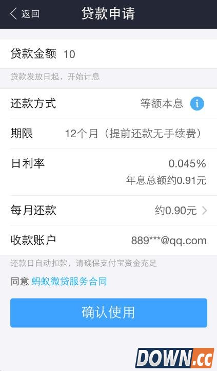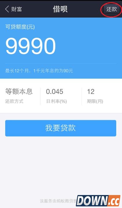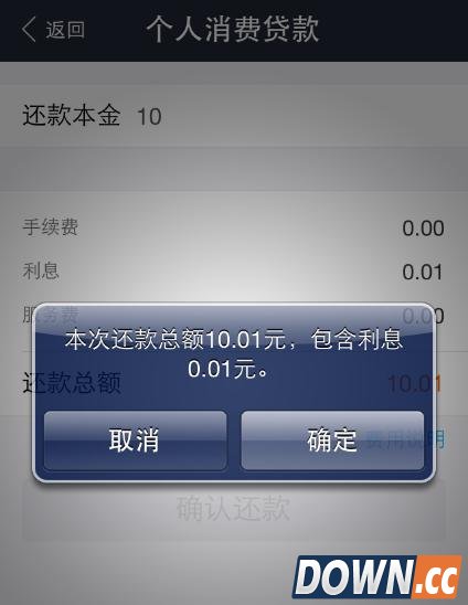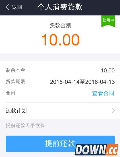 软件会提示还款的总额和利息,当然,还款越早利息越低。