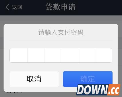 点击确认,输入支付密码及短信验证码后,即完成贷款。