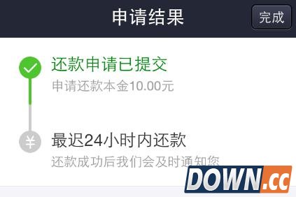 输入支付密码并提交后即显示还款成功。