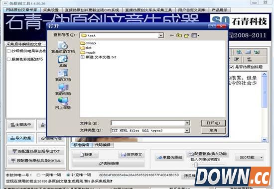 三、使用直接更新主流CMS系统:石青伪原创工具,支持直接更新动易,老丫,新云,dedeCMS等99%的国内主流CMS内容,通过接口直接取得站点上的信息,然后伪原创后上传回去。具体使用方法,使用界面有详细说明。按照说明一步一步的说很快就可以成功。