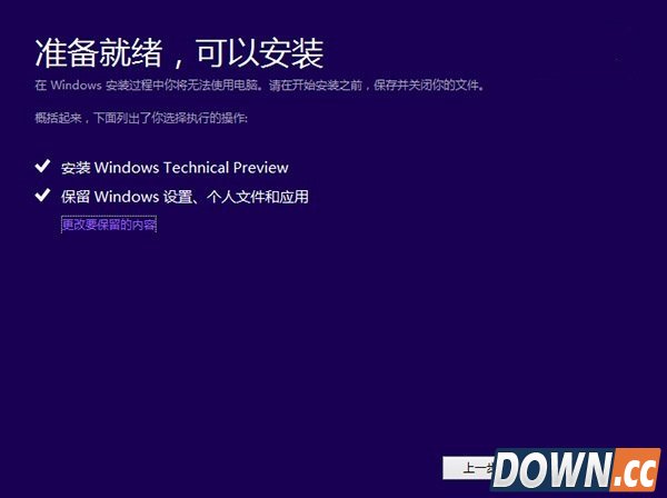 三种安装Windows10系统盘镜像方法: • 下载ISO后,可以用压缩软件进行文件校验来获取SHA1、MD5、CRC等校验值,确保下载的是官方纯净版,不给木马病毒留机会 • 老毛桃中的老毛桃U盘启动可以把ISO制作成启动U盘来进行安装,既省去了刻盘的麻烦,还可以随手分享给小伙伴 • 使用虚拟光驱软件可以把ISO直接虚拟成一个光驱,方便您直接运行安装 一、替代当前系统(即将当前系统升级至Win10技术预览版) 1,下载镜像后,打开ISO镜像(注:Win8/8.1中直接双击即可,Win7中可用虚拟光驱加载 ),直接运行镜像根目录中的setup.exe,如下图所示。 ![]() 2, 接受许可条款 ![]() 3,检查安装环境。这可能需要一段时间,主要取决于你当前使用的系统中的软件数量 ![]() 4,检查完成后,安装程序会列出你需要注意的事项,例如系统功能的缺失或现有软件的兼容性等。如果没有需要注意的事项则会出现下图所示结果。 ![]() 5,在这里还可以更改升级后需要保留的内容。点击“更改要保留的内容”,出现下图内容 ![]() 6,选择要保留的项目。 注意,无论选择哪个选项,升级后当前系统都会被Win10技术预览版替代。其中的“个人文件”是指“用户”文件夹下的内容;具体哪些应用可以保留取决于这些应用在Win10预览版中的兼容性;如果选择“不保留任何内容”,升级后“个人文件”仍会被保存下来,移至名为Windows.old的文件夹中。 ![]() 点击下一步即可开始安装,如果你选择保留所有内容升级,这将可能是一个非常耗时的过程。 本方法缺点是不能执行格式化安装(即纯净安装)。如果想执行格式化安装,请参考方法三 |