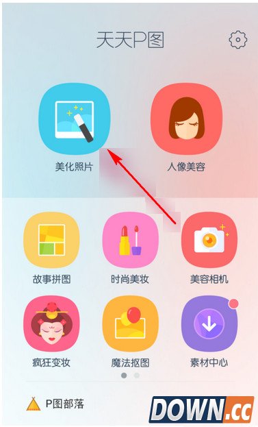 1、大家可以安装新版本后我们打开天天p图,然后我们点击美化照片