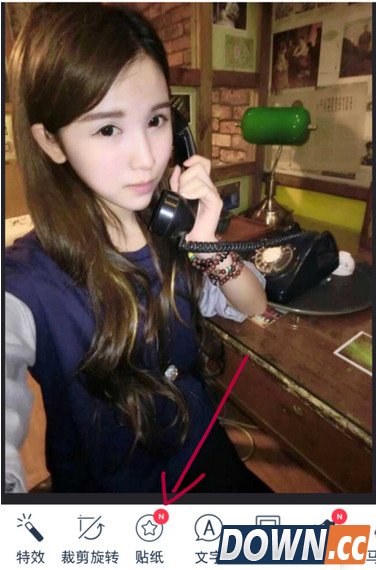 2、大家可以在相册中找一个照片,然后滑动下面工具,就可以找到贴纸工具了