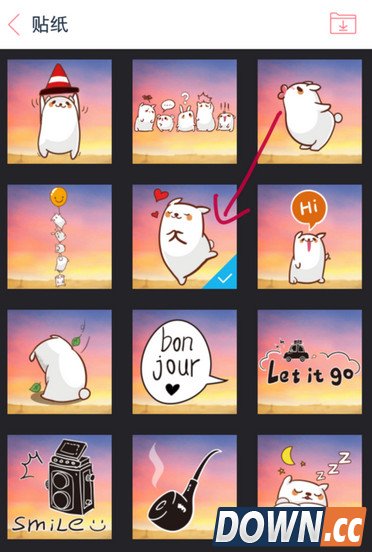 3、我们可以看到里面有很多的贴纸工具,若不喜欢也可以点击进去下载