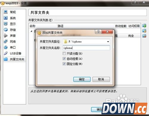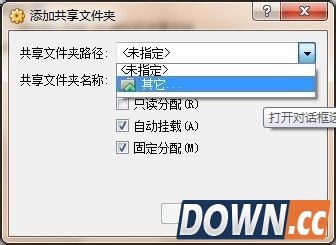 文件夹名称自行设置,自动挂载和固定分配勾选上 3、选择你要设置的文件夹,如下图