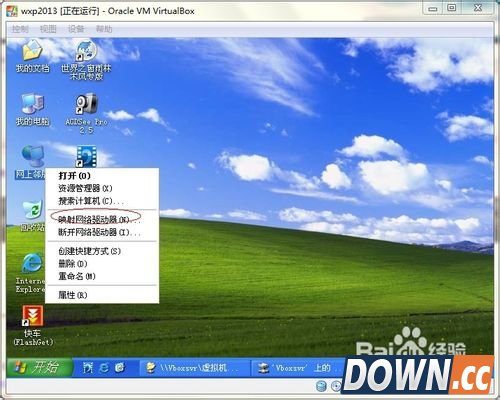 4、设置共享目录后,进入虚拟机=》鼠标右键点击网上邻居=》选择影射网络驱动器(如下图)