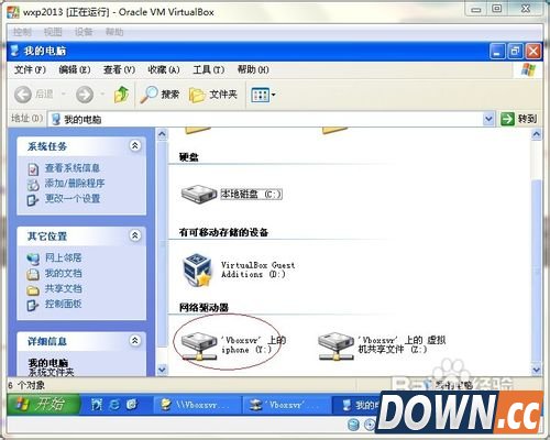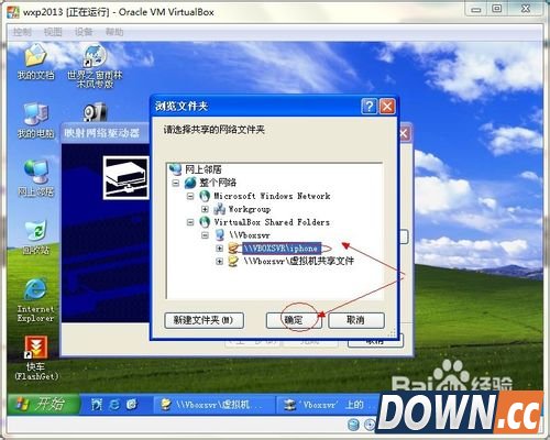 6、点击 virtualBox shared folders=》点击vboxsvr=》选择刚设置好的共享文件夹(本文中选择iphone)