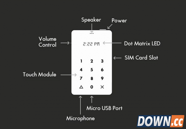 配置Light Phone只有信用卡大小,其尺寸为53.98 x 85.6 x 4mm,重量为38.5克,从厚度上来看秒杀如今一切超薄智能手机。由于Light Phone体积小巧,可以轻松放进钱包中保管,而且功能单一且没有耗电量极高的彩色显示屏,期待机可达20天。 从上图中也能看出,Light Phone全身上下一共只有两个按键,包括了顶部的电源键和手机左侧的音量控制按键;点阵LED屏幕日常状态下会显示时间,而在拨号或来电时则显示电话号码。 由于Light Phone功能单一,也不支持3G和4G网络,只支持GSM 850/900/1800/1900MHz。这部Light Phone反智能手机目前正在Kickstarter上众筹,预售价格为100美金,如果众筹成功,将于2016年5月正式发货。