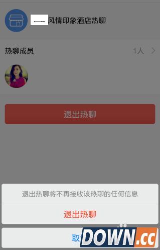 如果我们不想热聊了,可以点击右上方的按钮,然后点击退出热聊,如图所示: