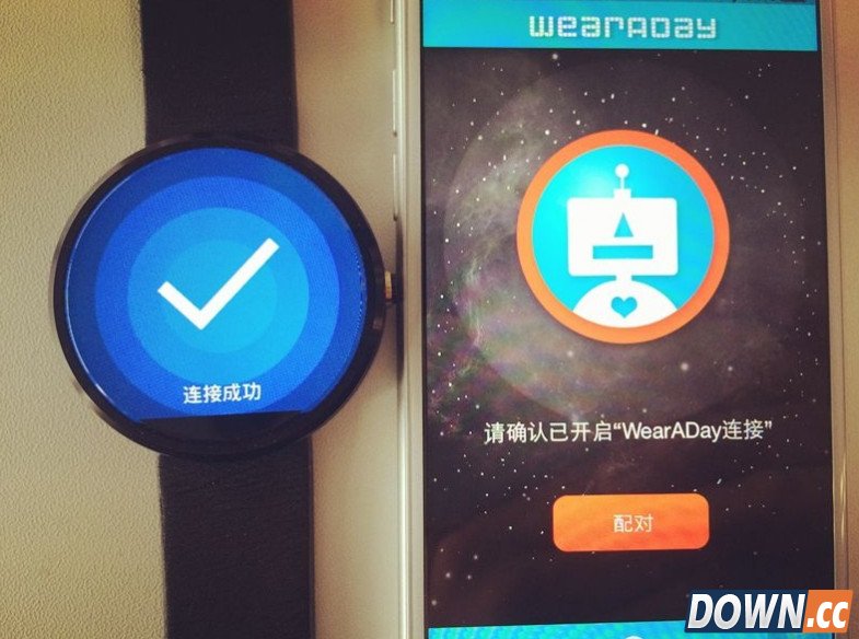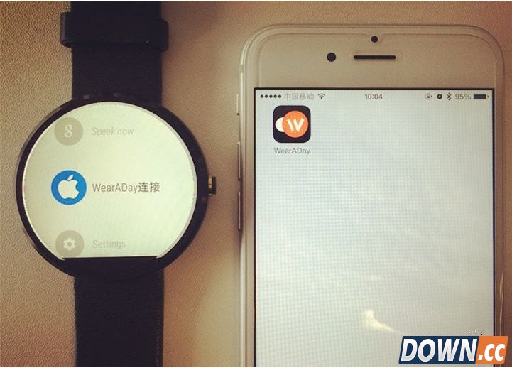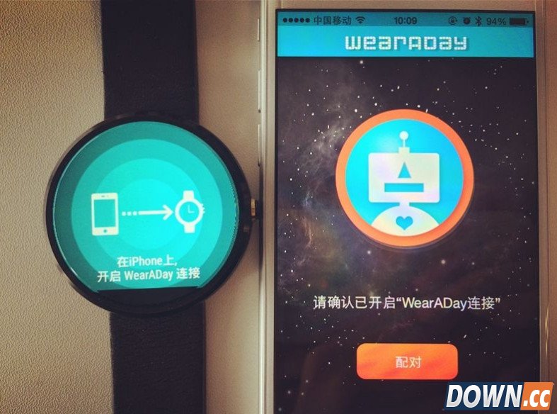 然后同时打开 Moto 360 与 iPhone 上的 WearADay 应用程序。