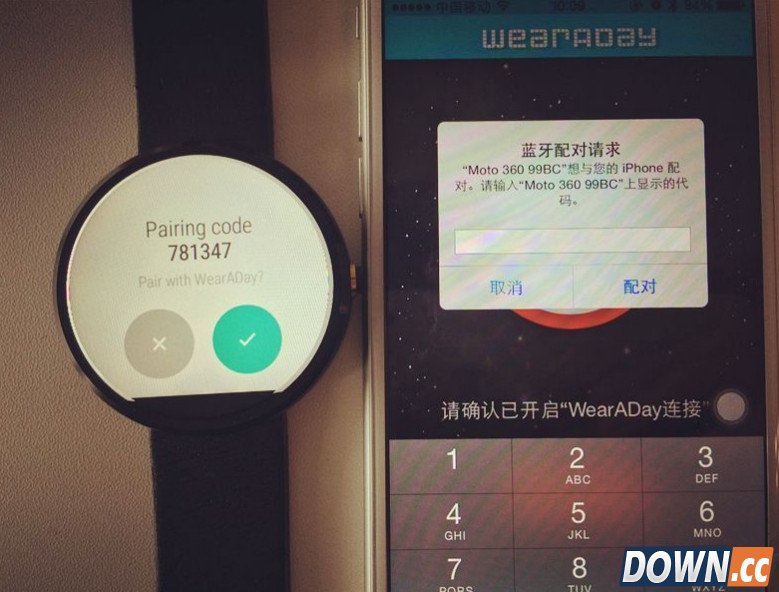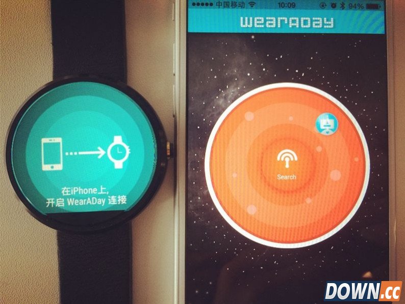 二月份的时候就有消息传出开发者iPhone 6 和搭载 Android Wear 系统的 Moto 360 配对成功,现在我们普通用户也能进行两者的配对,而且过程很简单不要求iPhone越狱也不需要Moto 360破解,下面就为大家分享一下iPhone配对Moto 360方法 注意: 想要把手里的 iPhone 和 Moto 360 配对,必须确保你的 Moto 360 是已经激活的状态,并且已经安装上最新版的WearADay。而想要把 WearADay 安装到你的 Moto 360 上必须先让你的 Moto 360 与一台 Android 手机配对,然后把 WearADay 安装到手机上,等待 1 到 3 分钟,WearADay 会自动同步到手表上。这个时候你就可以用 Moto 360 和 iPhone 配对了。 首先在 iPhone 上 App Store 里边搜索 WearADay 并安装。