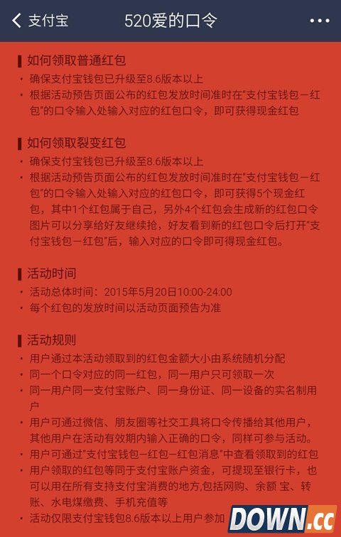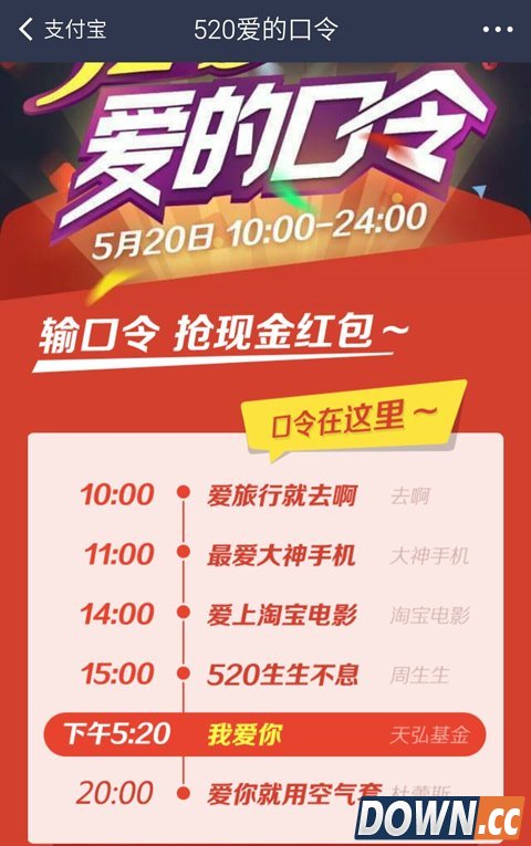 关键字:520支付宝红包口令是什么 520支付宝红包口令介绍